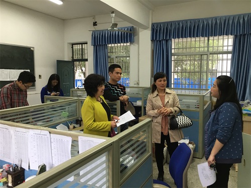 日,档案馆馆长吴青霞、学生档案室刘海燕对各教学学院进行为