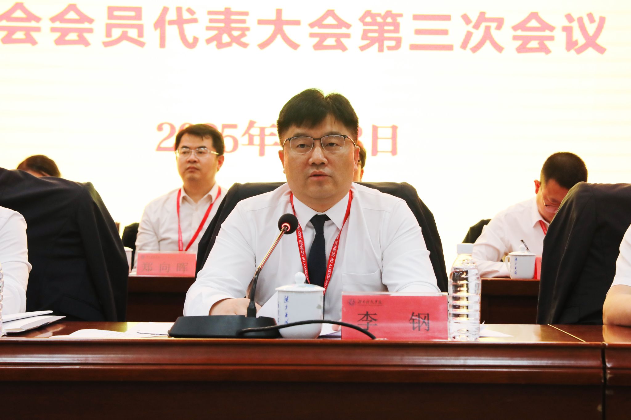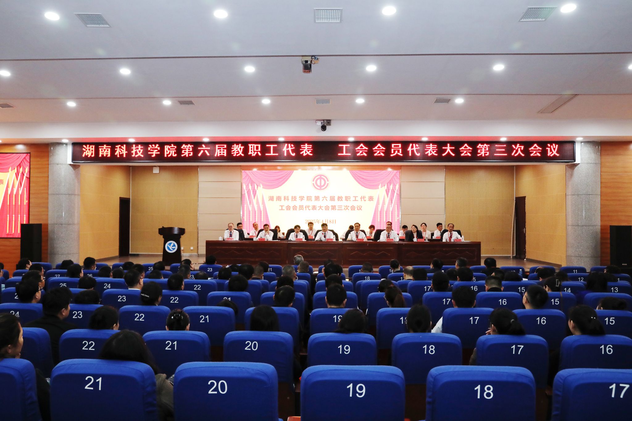 本网讯(记者 向薛峰 摄影 谢志豪)春风浩荡满目新,扬帆奋进正当时。4月8日,我校第六届教职工代表、工会会员代表大会第三次会议在潇湘大讲堂召开。校党委书记李钢,党委副书记、校长黄创霞,校领导李常健、何福林、陈灿军、郑银芳、何海,党委委员、组织部部长杨涛,全体代表、特邀嘉宾和列席代表齐聚一堂,共同商讨学校发展大计。