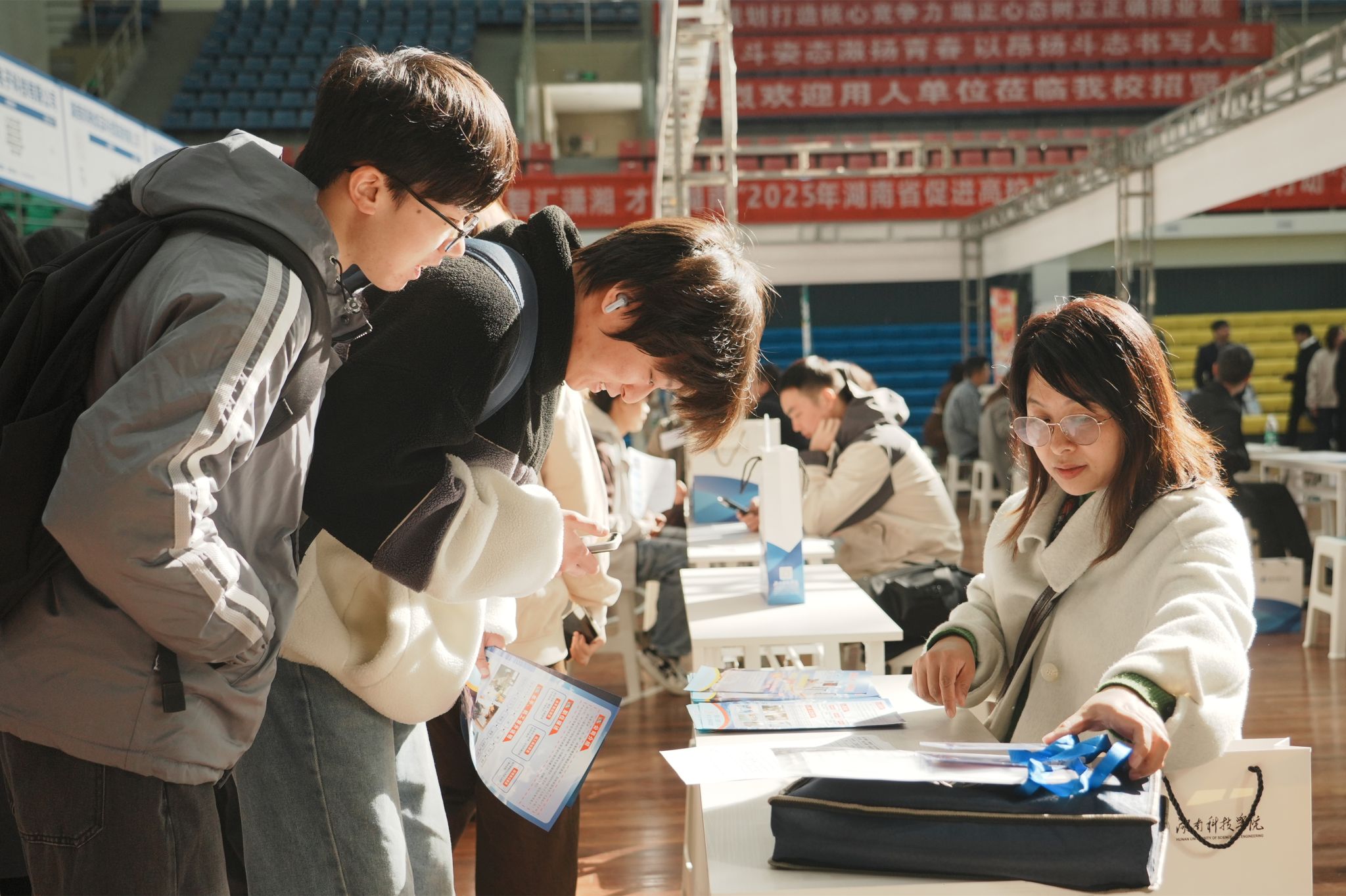 本网讯(记者 逄宇鸣 通讯员 龙泉 摄影 戴子航)11月27日,“智汇潇湘,才聚湖南”2025年湖南省促进高校毕业生就业创业系列行动“湘才留湘”校园巡回双选会永州站活动在我校举行。本次招聘会共有106家用人单位参会,提供就业岗位4200余个,吸引我校与永州职业技术学院、潇湘技师学院3所高校近4000名毕业生参会,现场收到简历3859份,初步达成就业意向1347人。
