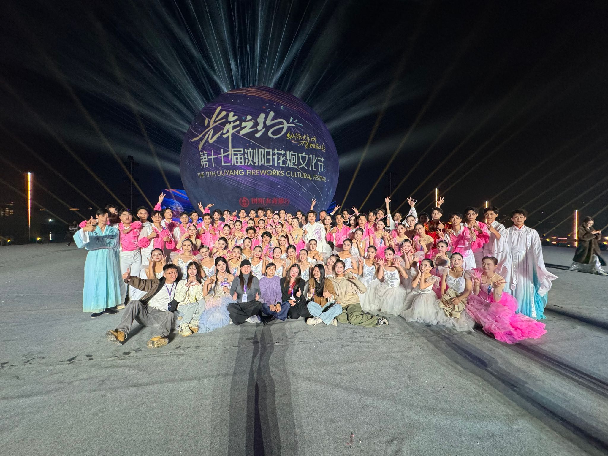 本网讯(通讯员 蒋磊)10月24日至25日,音乐与舞蹈学院70名学子登上第十七届中国(浏阳)花炮文化节舞台,以一场融合科技与艺术、传统与现代的沉浸式演出,开启一场别开生面的美育实践课堂。