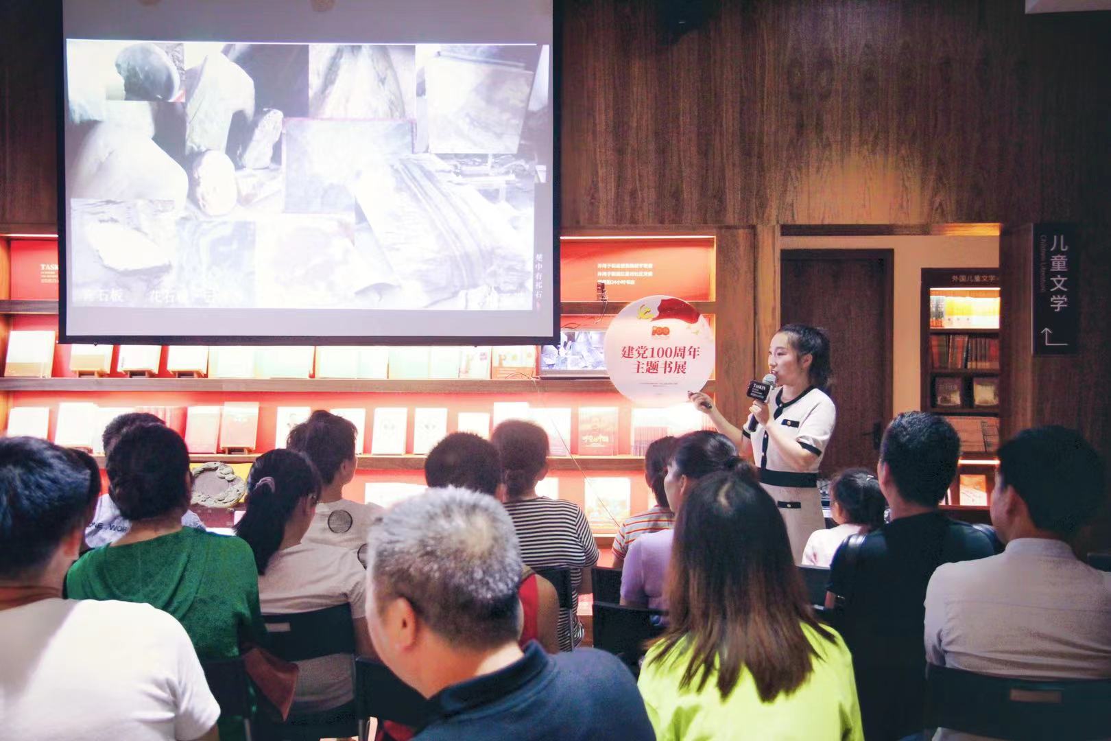 本网讯 近日,九州线上平台美术与艺术设计学院视觉传达系邓子戈老师为献礼建党100周年,于长沙德思勤城市广场书店开展社会艺术教育专题讲座,她以《楚中有祁石—湖南永州祁阳石文化赏析》为题,为社会艺术爱好者讲述了国家地理标志祁阳石相关知识,展现了永州的非遗文化无限魅力,大家纷纷表示此次讲座受益匪浅。此次讲座也是该院立足永州、服务地方,推广永州地方文化,响应国家美育“硬指标”,循序渐进做好高校艺术教育普惠大众的第一步。