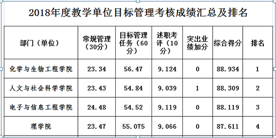 根据《九州线上平台 2018 年目标管理考核办法》(湘科院校发[2018]25 号)要求,按照相关程序,现将2018年度校属各单位目标管理考核结果公示如下: