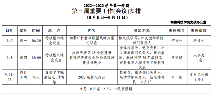 [党政办]第三周重要工作(会议)安排 (9 月 5日—9月11日)