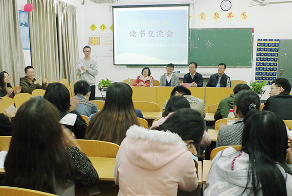 本网讯 (通讯员 谢娟)1031日晚,理学院数应1501班在明理楼211举行读书交流会,校党委书记陈弘应邀欣然来到交流现场,与同学们共同分享读书心得。