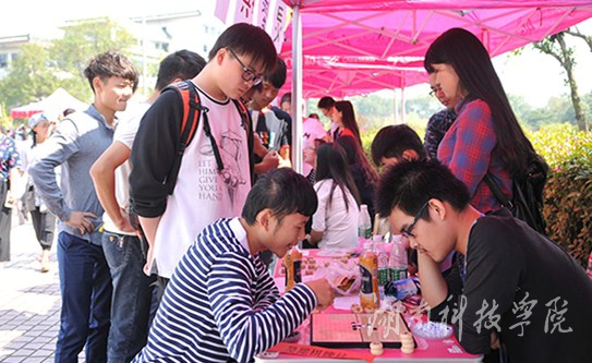 本网讯(记者 裴滢 劳有娟  陈肖莲 实习记者 尹文怡 刘献)10月17至18日,在弥漫着桂花香的文化广场上,我校各大社团屡出奇招,秀创意招揽不同兴趣爱好的学子“入社”。