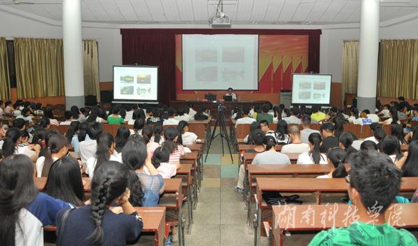 讲座伊始,陈弘风趣地与同学们说,你们是新生,今年大一,我2012年来校,可以称得上是一名大四的学长,作为大学文化的传承者、实践者和参与者,今天跟大家共同交流。他以韩愈、苏东坡、柳宗元为例,向新生们阐述了一个道理,地因人而始重。他说,永州是一本承载五千年中华文明、内容博大精深、引人入胜的书,丰富的历史文化资源是大家上大学最好的营养。