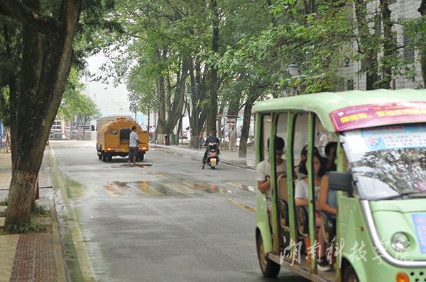 校园主干道已经清洗完成,以干净整洁的校园面貌等待新生的到来。