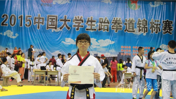 本次比赛来自北京、天津、上海等全国124所高校共1300余名选手角逐竞技、品势两个大项共16个级别的冠军。我校参赛运动员在个人品势和团体品势比赛中获奖。其中,孙琳获女子甲组个人品势第五名;孙琳、潘思和陶瑞雪获女子甲组团体品势第五名并获总分第八名;黄欣、李园、梁水英获女子乙组团体品势第五名并获总分第五名;体育学院盛靖同学获2015年中国大学生跆拳道锦标赛“最佳技术奖”;张修昌老师获“优秀教练员奖”。