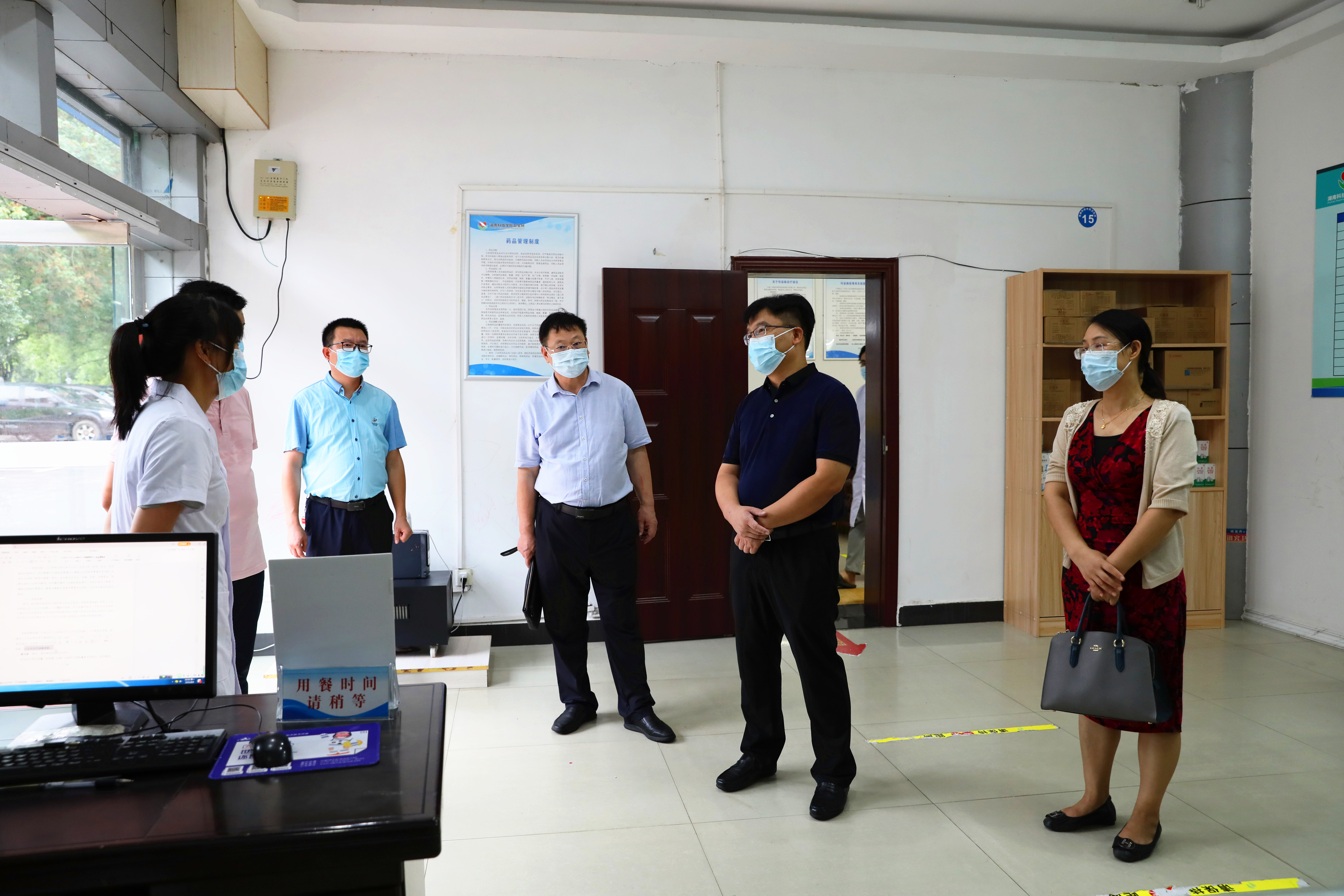 在医务室,校领导看望慰问了在岗一线医护人员,检查相关工作开展情况。李钢嘱咐医护人员要以对师生身体健康和生命安全高度负责的态度,全力做好防控工作,并请医护人员务必注意自身安全,切实做好防护。同时,要做好防疫物资储备,做好开学准备工作。