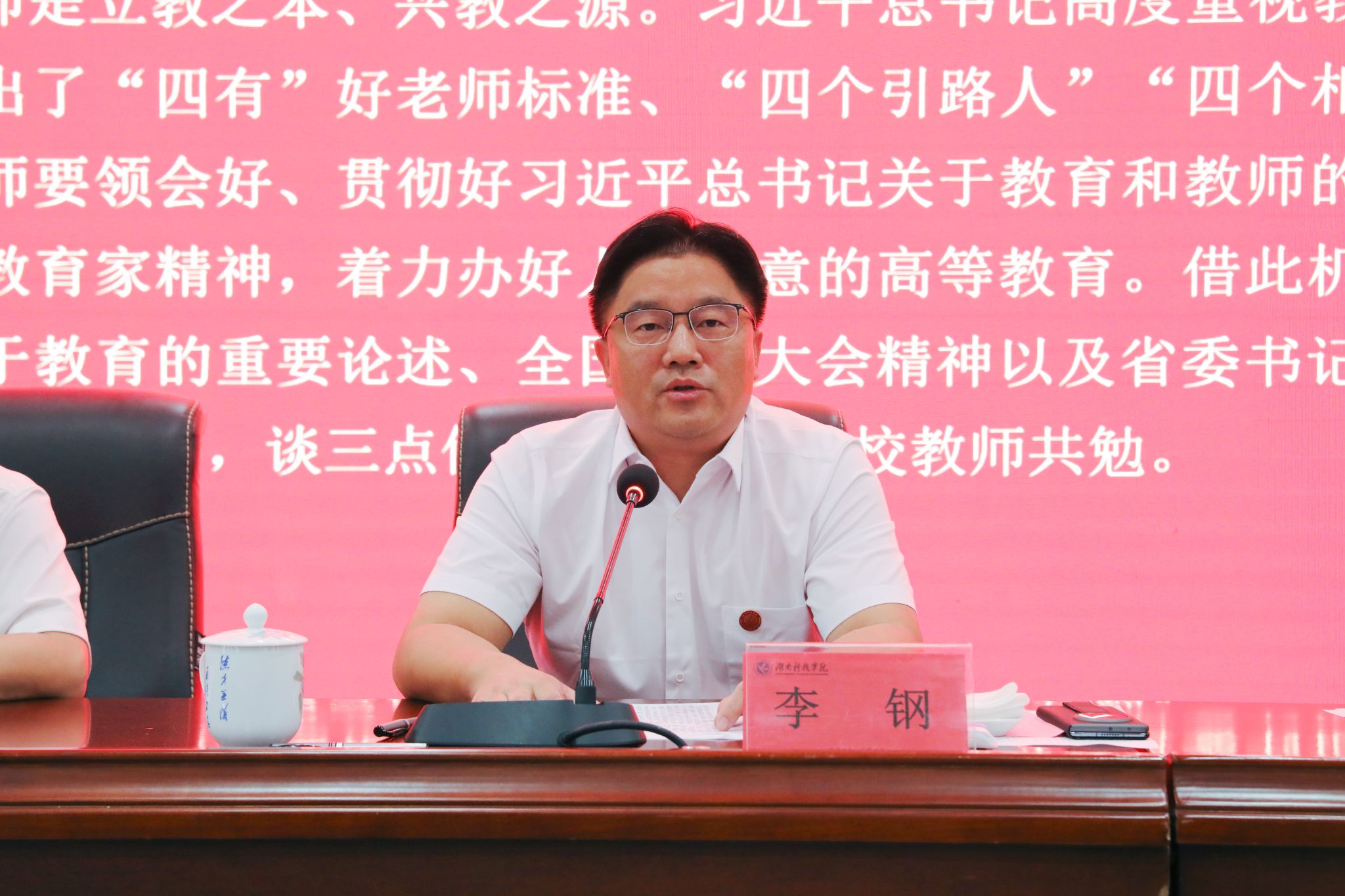 党委书记李钢以《躬耕教坛育桃李 强国有我谱新篇》为题作重要讲话。他代表学校党委行政,向辛勤耕耘在教学、科研、管理、服务一线的全体教职员工致以节日的祝福和衷心的感谢,向新进教师表示诚挚的欢迎,并向为学校事业发展夯基垒台、立柱架梁的老教师们致以崇高的敬意。