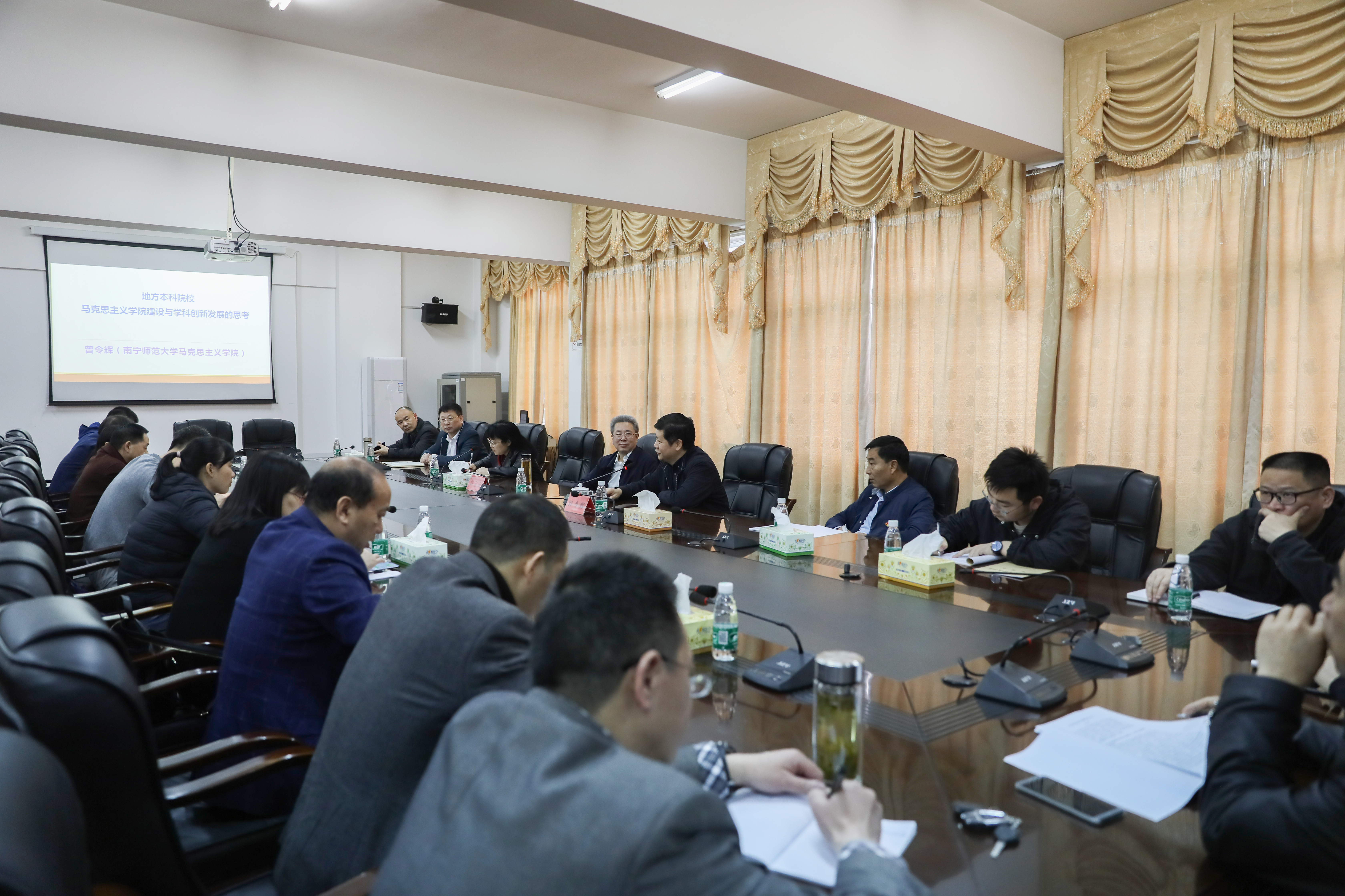 本网讯 4月28日,南宁师范大学马克思主义学院院长曾令辉教授应邀来校以“地方本科院校马克思主义学院建设与学科创新发展的思考”为题作专题报告。党委书记曾宝成、马克思主义学院全体教师及部分学生代表到场聆听。