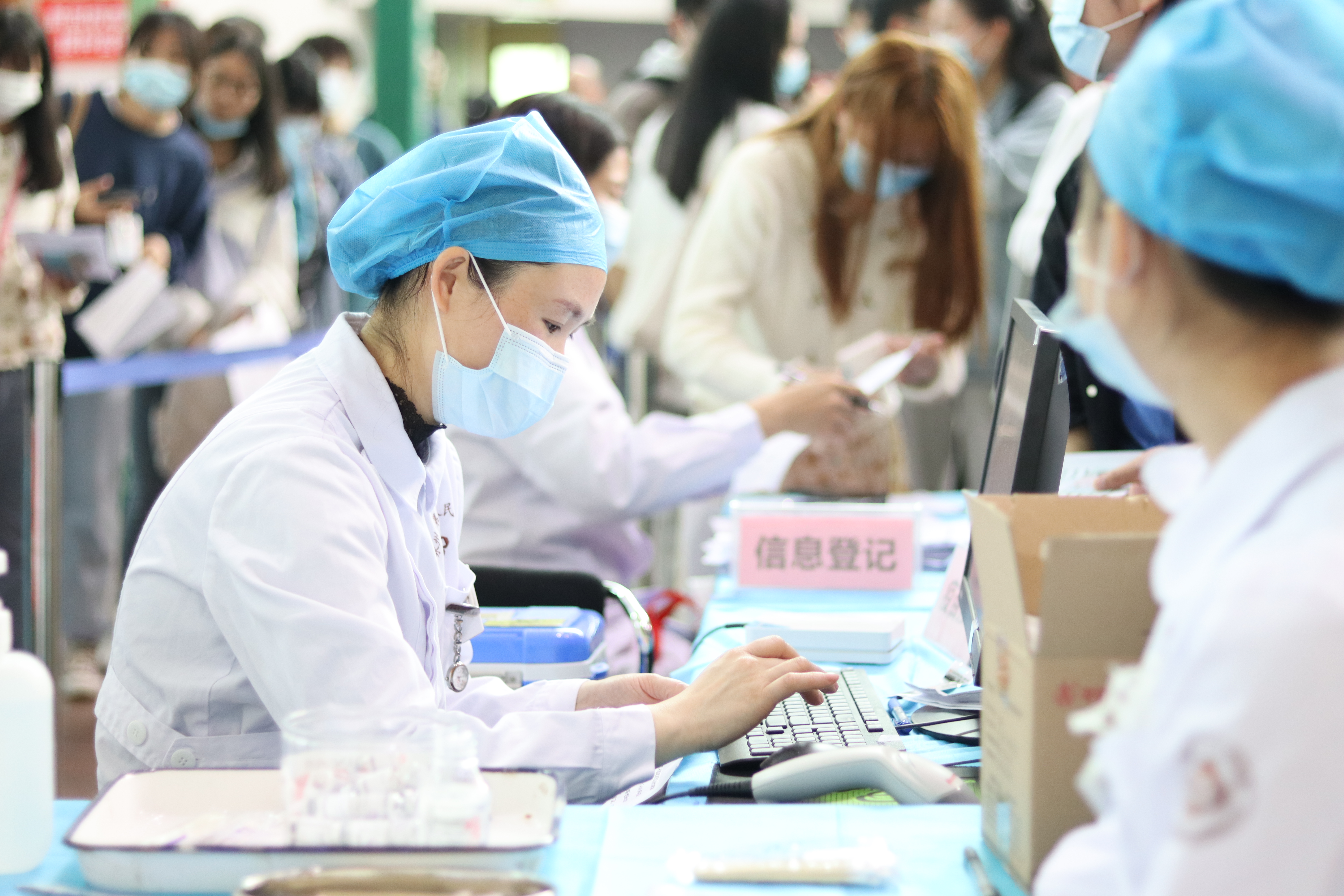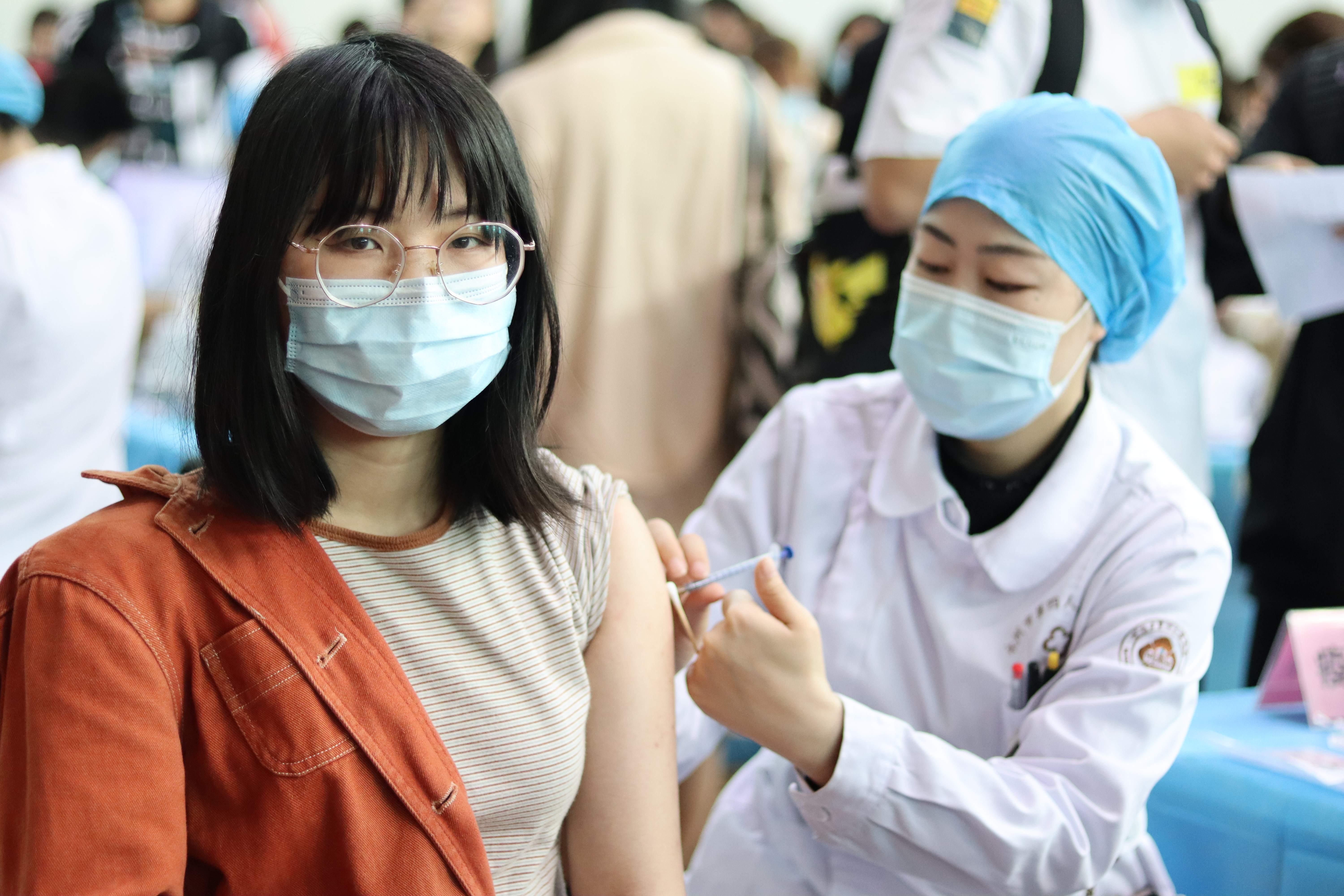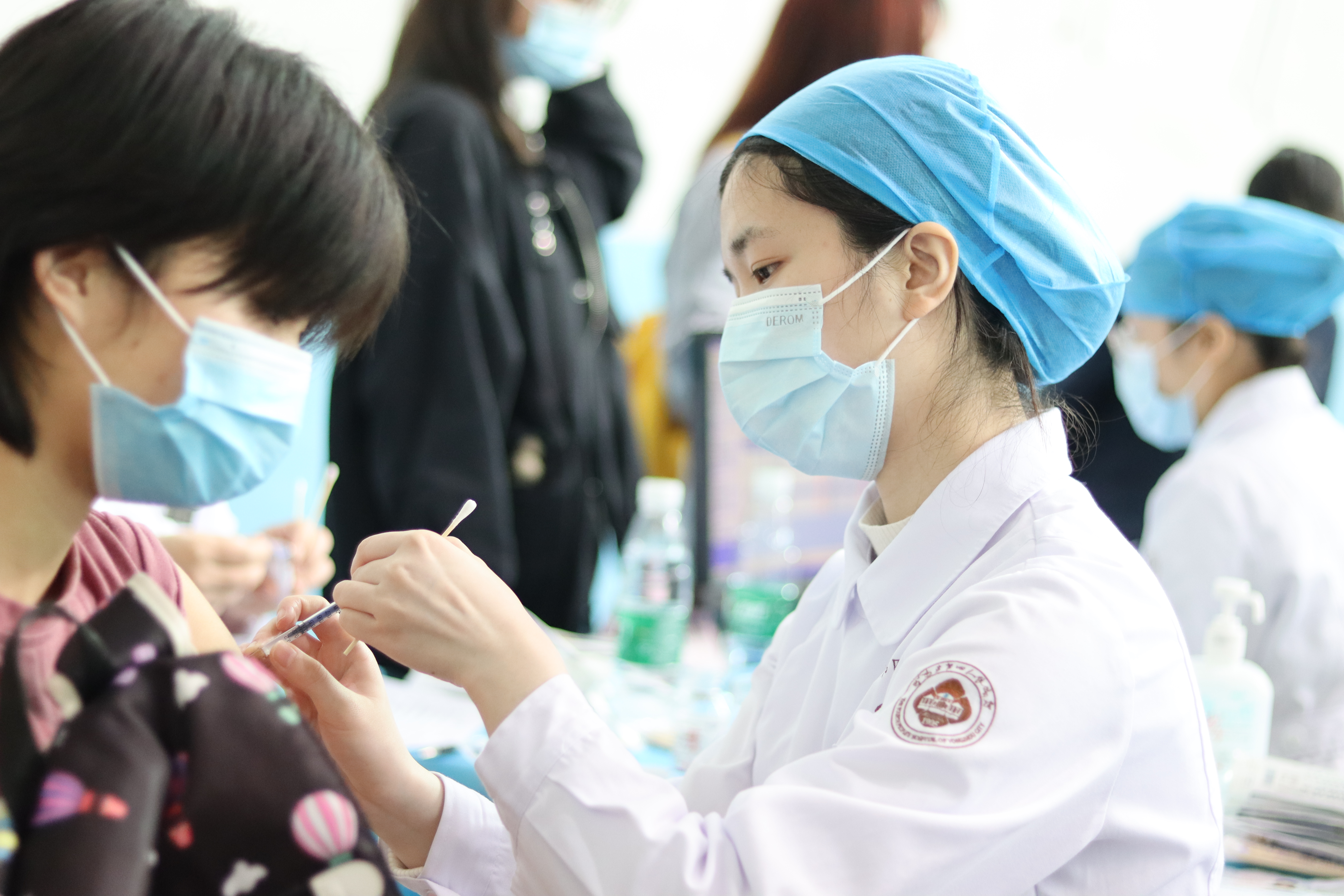 “等候——登记——接种——留观——离场”,疫苗接种现场形成闭环管理,整个疫苗接种流程及防疫工作安全有序。受种师生在志愿者的指引下有序进入候检区,签署知情同意书、登记信息,依次排队接种。完成接种后,师生们遵照医务人员要求,留观30分钟后无不适症状,方可按照规定有序离场。