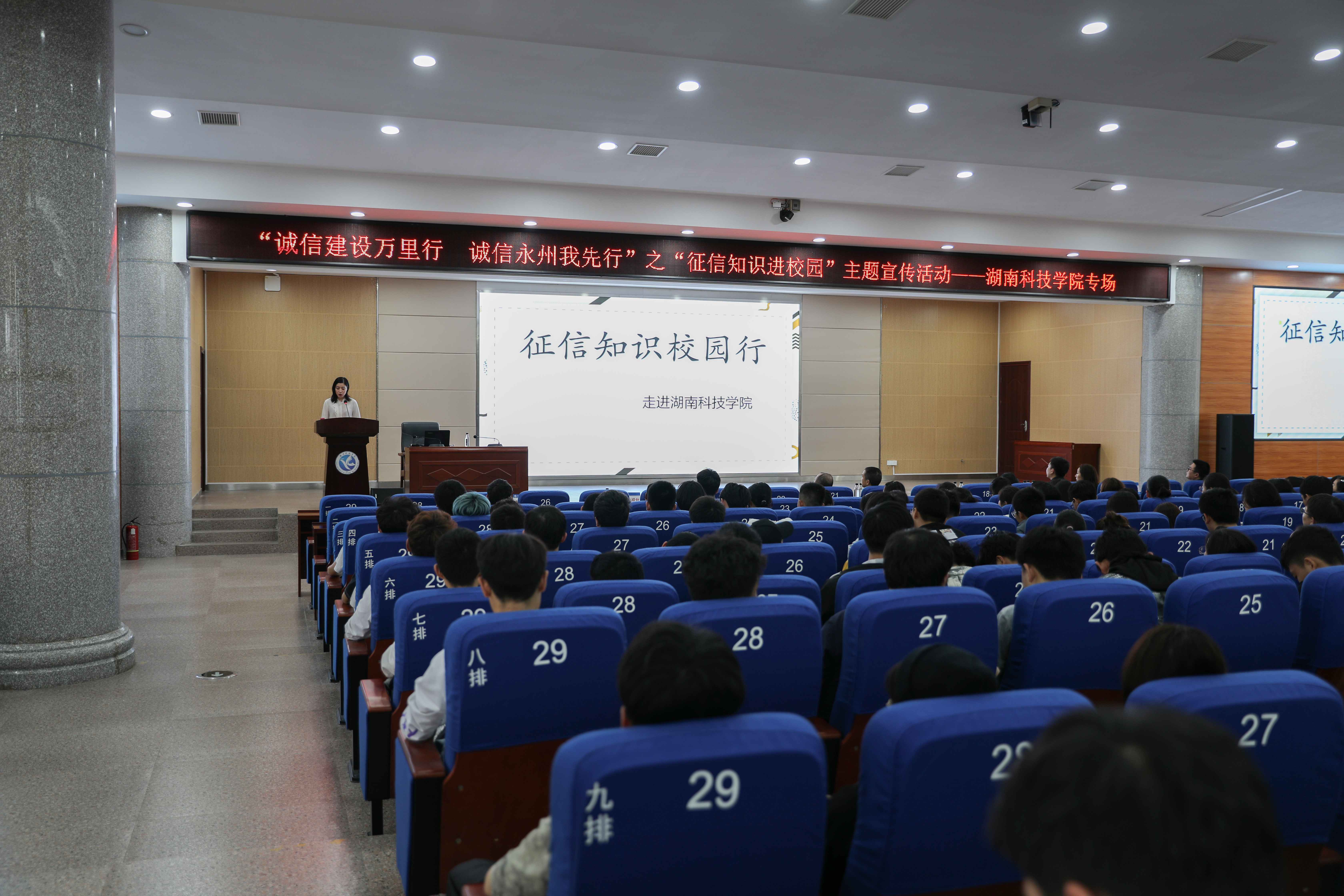 本网讯(实习记者 黄彩燕 周芳梅 周欣怡)为全面推进永州市全国社会信用体系建设示范城市创建工作,11月18日,由中共永州市委宣传部、中国人民银行永州市中心支行、永州市行政审批服务局主办,学校与中国银行永州分行联合承办的“诚信建设万里行,诚信永州我先行”之“征信知识校园行”主题宣讲活动九州线上平台专场在潇湘大讲堂举行,学校600余名学生到场聆听。