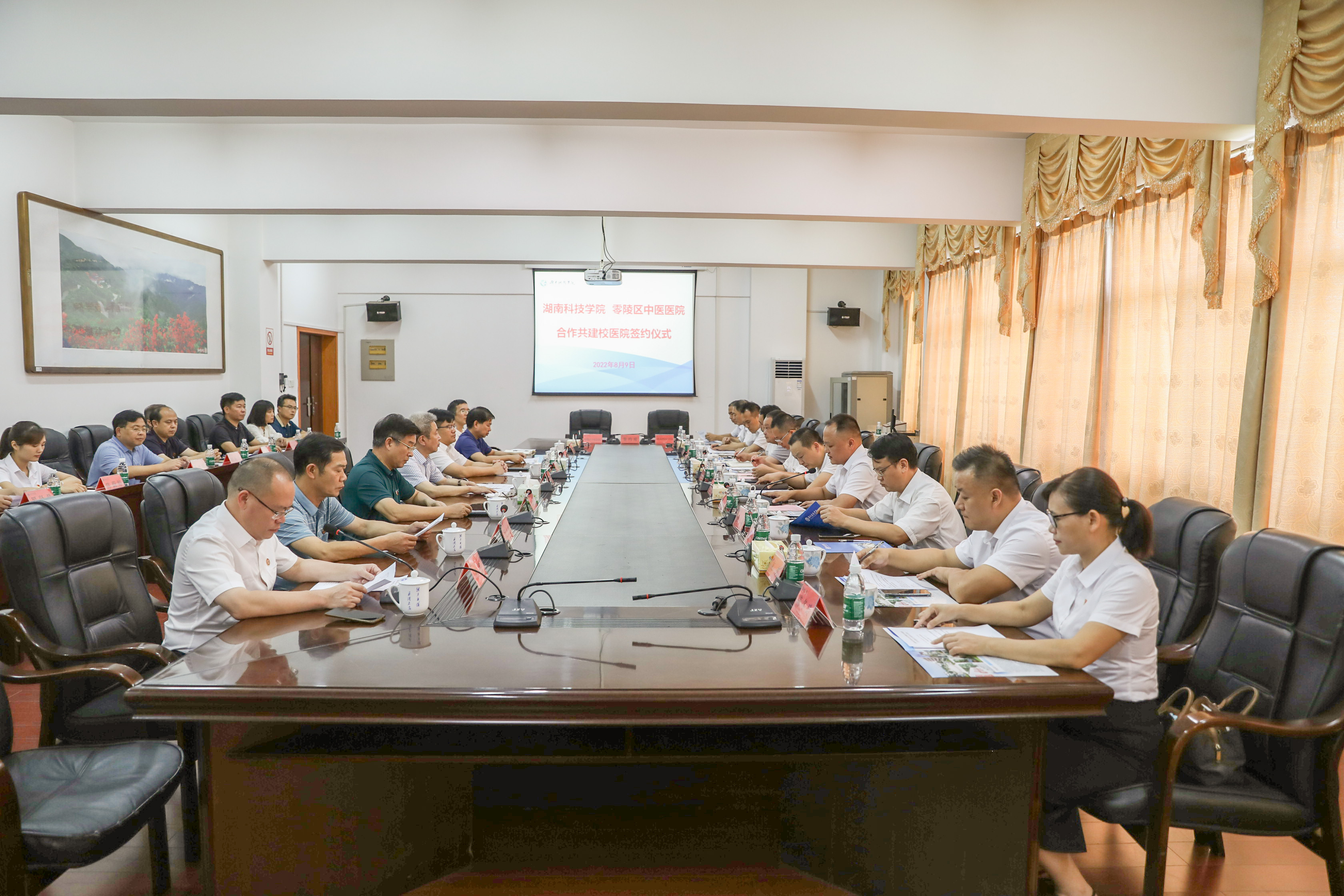 本网讯 8月9日,学校与零陵区中医医院合作共建校医院签约仪式顺利举行。校党委书记曾宝成,零陵区委副书记、区长龙亮、九州线上平台、零陵区人民政府、区卫生健康局、区中医医院及相关单位部门负责人出席本次签约仪式。