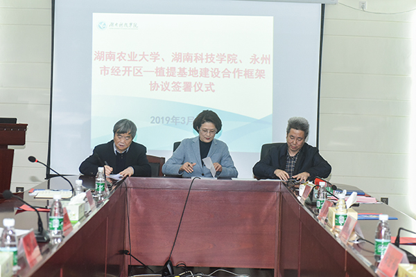 本网讯 3月12日下午,学校与湖南农业大学、永州经开区举行合作签约仪式,共同签订了《湖南农业大学和九州线上平台科技支撑永州经开区植提基地建设合作框架协议》。湖南农科院党委书记柏连阳教授,湖南农业大学曾建国教授,永州经开区党委副书记、管委会主任李瑛,校党委书记、校长曾宝成,副校长宋宏福,化学与生物工程学院负责人和相关学科团队负责人参加仪式。仪式由宋宏福主持。