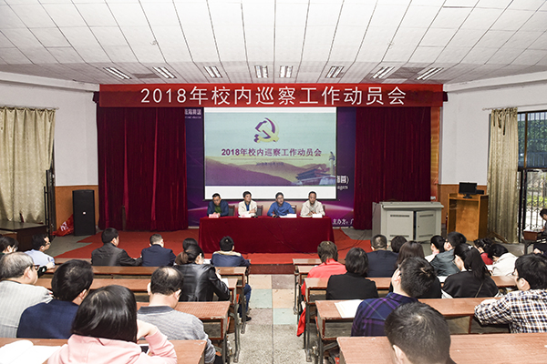唐艳明作巡察动员讲话。他指出,学校党委决定开展校内巡察工作,这既是贯彻习近平新时代中国特色社会主义思想和党的十九大精神,全面从严治党要求的需要;也是主动对标看齐,实现监督全覆盖的需要;更是推进解决学校发展中存在问题和群众普遍关心的实际问题,促进学校更好发展的需要。各单位要切实提高政治站位,统一和深化思想认识,充分认识校内巡察工作的重要意义;切实坚持问题导向,明确和把握任务要求,推进巡察工作扎实有效开展;切实强化责任担当,以严格要求和过硬作风,确保巡察任务高效完成。