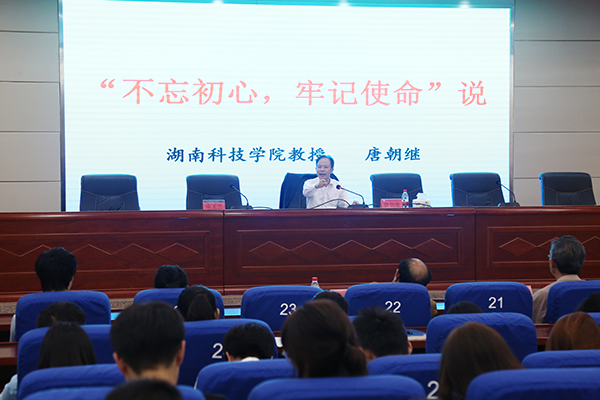 唐朝继从党的初心与使命是什么、为什么、怎么样三个层次展开,通过列举实例,深入分析,引导同学们结合自我成长的经历,联系身边的变化,深刻认识到坚持中国共产党的领导,是历史的选择、人民的选择,深刻认识到走中国特色社会主义道路的历史必然性。他号召同学们,在习近平新时代中国特色社会主义思想的指引下,切实增强“四个意识”、坚定“四个自信”,不忘初心、牢记使命,共同汇聚起实现中国梦的伟大力量。