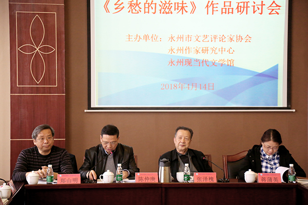 本网讯  4月14日上午,由永州市文艺评论家协会、永州市作家研究中心、永州现当代文学馆举办的郑山明作品《乡愁的滋味》研讨会在校举行,来自校内外的近30位专家、评论家、学者参加此次研讨会,共收到评论文章17篇。研讨会由中国作家协会会员、省舜文化研究会会长陈仲庚主持。