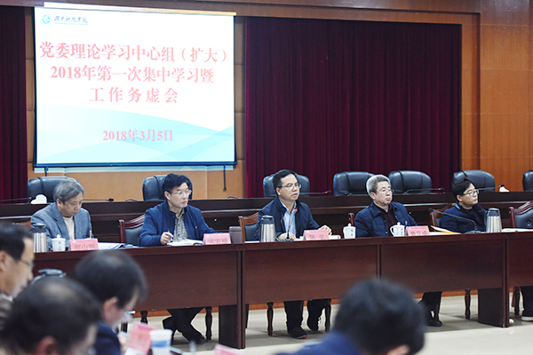 本网讯   3月5日至8日,学校利用工作日晚上和政治理论学习时间,以“不忘初心,牢记使命”为主题,举行2018年党委理论学习中心组(扩大)第二次集中学习暨工作务虚会。校党委书记陈弘,校党委副书记、校长曾宝成等中心组成员及全校正处级领导干部、党务部门副职参加了学习研讨。