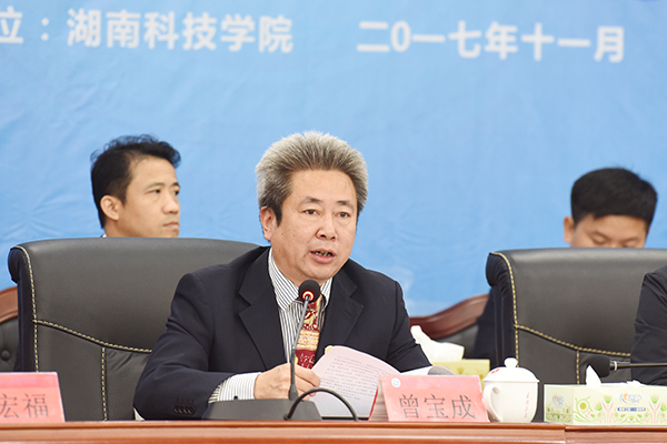 曾宝成在致辞中指出,今年是我校办学76周年,76年来,学校立足永州、根植永州、服务永州,取得了优异的办学成绩。学校将按照习近平总书记 “扎根中国大地办大学”指示要求,坚持“六精”发展战略,树立“开门办大学”意识,不忘初心,牢记使命,努力把学校办成具有鲜明地方特色的高水平应用型大学,努力办好党和人民满意的教育。