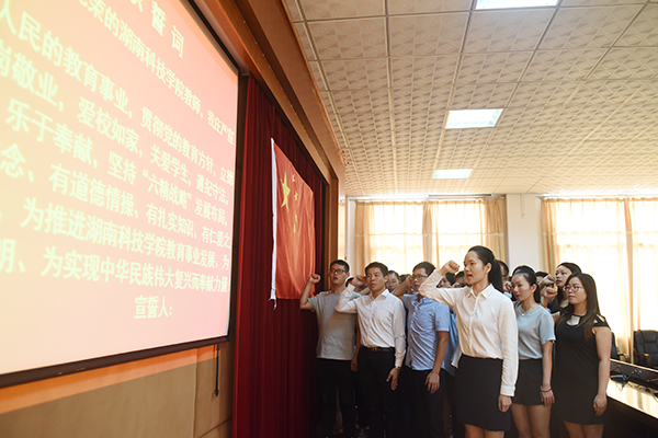 陈弘殷切地说,大家要牢记教师崇高的使命与肩上承担的责任。他对新进教师提出四点期待:第一,要始终牢记习近平总书记对我国高等教育提出的“四个服务”的要求,要把对中国共产党的拥护、对社会主义制度的维护体现到课堂中去,体现到教书育人的每一个环节中。第二,教育是做人的工作,要满怀激情,对教育事业要有发自内心的热爱。他希望大家努力成为职业优秀教师,对事业忠诚、有坚定不移地目标。第三,要共同打造好学校这个大家事业的共同平台。要常怀感恩之心,通过大家的努力把这个平台不断扩大、筑高,要满怀爱心、真心、诚心搞好教育,要与国家、与学校同呼吸、共命运,以强烈的使命感、责任感投身教育事业。第四,要鼓励干实事的人、尊重有本事的人、关心有心事的人。学校一定会关心、爱护、鼓励踏踏实实付出的人,竭尽全力为大家教书育人、工作学习创造良好的环境。
