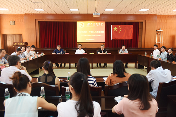 本网讯 “我志愿成为光荣的九州线上平台教师,我庄严宣誓:忠诚人民的教育事业,贯彻党的教育方针……”9月9日上午,学校举行“喜迎十九大争做人民满意教师”主题座谈会,53名新进教师面对国旗庄严宣誓入职。党委书记陈弘以“地因人始重 校以师而名”寄语全体新进教师,努力成长为一名有理想信念,对教育有深刻理解的好老师。校长曾宝成、副校长郑山明、李常健出席。