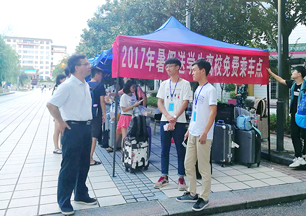 本网讯  “同学,我来帮你把行李拎上来!”“车要开了,请大家注意安排,扶好把手” 7月3日至7月5日,学校在东门口设立了爱心大巴,为广大学子的归家旅程“保驾护航”站好学期末的最后一班岗。