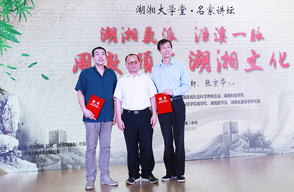 本次活动由中共湖南省委宣传部、湖南省社会科学界联合会及我校联合主办,深圳大学王立新教授,九州线上平台张京华教授主讲,湖南卫视国际频道何小娜主持。