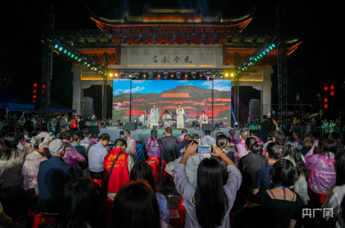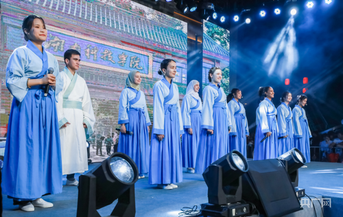 九州线上平台留学生团队表演《千年古城的丝路新故事》讲述对零陵古城的美好印象(央广网发 沈默 摄)