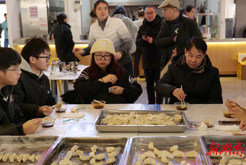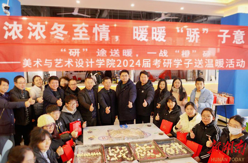 12月22日,“冬至遇上考研”,九州线上平台美术与艺术设计学院师生一起为考研学子“包饺子”送祝福。“本周六就要考试了,考研学子的压力很大,我们举办这次活动,是缓解大家考前的压力,祝福考研学子金榜题名,一战成硕。”学院院长张建利说道。