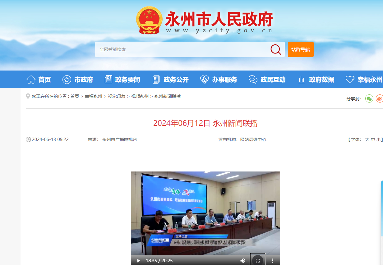 永州新闻联播:http://www.yzcity.gov.cn/cnyz/yzxwlb/202406/bc984f2370a0408fa21ed98c44ecab51.shtml