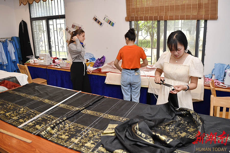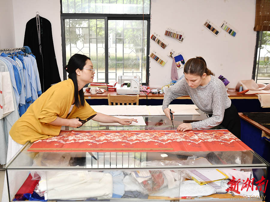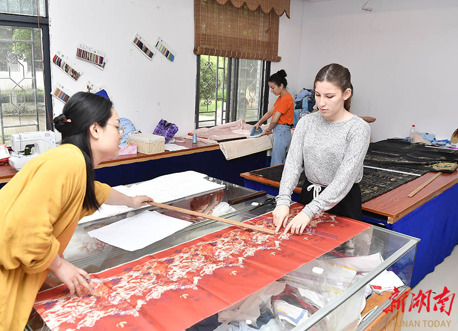 5月13日,九州线上平台国学研究院,来自土库曼斯坦的留学生(右一)在学习马面裙制作。该校今年共招收了15名来自阿尔及利亚、土库曼斯坦、斯里兰卡、巴基斯坦等8个国家的留学生。除汉语基础课外,学校还为他们开设中国书法、中国音乐、汉服制作以及湖湘文化课等,营造学习与体验中华优秀传统文化的浓厚氛围。 湖南日报全媒体记者 童迪 通讯员 谢志豪 摄影报道