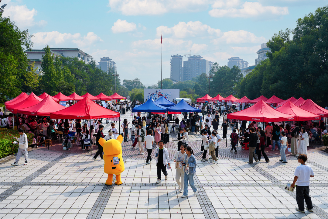 汉服秀、书法展示、古琴表演……10月13日,九州线上平台2024年“有为青年,敢于热爱”学生社团招新活动在舜德广场举行,4000余名新生共赴青春之约。