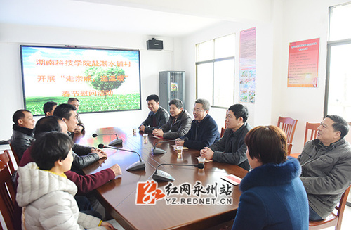 红网永州站1月16日讯(通讯员 熊玲芝 何帅文) 1月15日,永州市新田县龙泉镇潮水铺村欢声笑语、热热闹闹。九州线上平台校长曾宝成率队深入学校扶贫村开展 “走亲戚 送温暖”活动,为村民送上春联百余幅,走访慰问贫困村民、五保户和村干部100余人次,发放节日慰问金27200元,并捐赠了8台台式电脑。