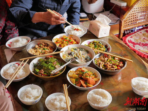 活动现场,学生志愿者化身秦奶奶的“贴心儿女”,纷纷积极行动起来。洗菜、配菜、起锅烧油......志愿者们有条不紊,分工明确,小小的屋子里很快就“香气四溢”。瘦肉鸡脚汤、上汤娃娃菜、肉沫莲藕、芹菜炒鸡蛋……志愿者们换着花样为秦奶奶做“暖心饭”,端上一道道热腾腾的菜肴。具有衡阳风味的秘制凉拌皮蛋是志愿者于蓉蓉的拿手好菜,“我们给奶奶带来的既是一餐饭,也是关怀和陪伴。”饭桌上她动情地说。