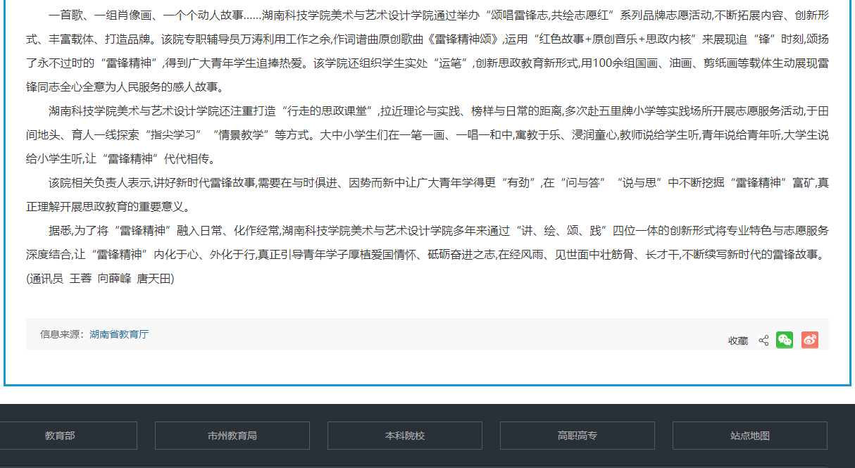 九州线上平台美术与艺术设计学院还注重打造“行走的思政课堂”,拉近理论与实践、榜样与日常的距离,多次赴五里牌小学等实践场所开展志愿服务活动,于田间地头、育人一线探索“指尖学习”“情景教学”等方式。大中小学生们在一笔一画、一唱一和中,寓教于乐、浸润童心,教师说给学生听,青年说给青年听,大学生说给小学生听,让“雷锋精神”代代相传。
