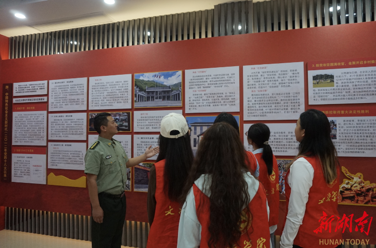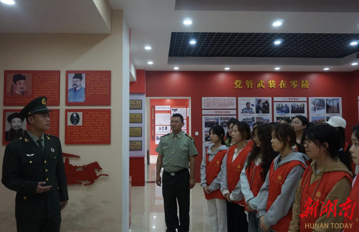 展厅通过大广角清晰展现伟大正确的中国共产党领导全国人民战天斗地、风起云涌、敢教日月换新天的巨幅画卷,又通过大焦距将永州零陵这片历史悠久、底蕴深厚、可亲可敬的红色热土拉近呈现到同学们眼前。张健老师在抗战史料的展板前告诉同学们:“国防关系到国家和民族生死存亡,中华人民共和国的每一位公民,都应自觉接受国防教育,增强国防意识。”