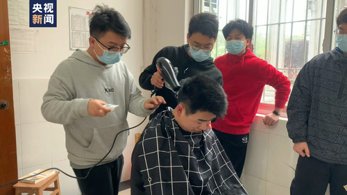4月1日,湖南邮电职业技术学院组织了一场“温暖从头开始”的义务理发活动,为师生们免费理发。志愿者戴着口罩,做好个人防护,提前对剪发、吹发等工具进行消毒。虽然现场条件简陋,只能做简单的发型修理,但还是吸引了不少同学前来“光顾”。 为了做好服务,志愿者付东升还邀请当理发师的姨妈通过视频电话提供技术指导,精心剪出师生满意的发型。