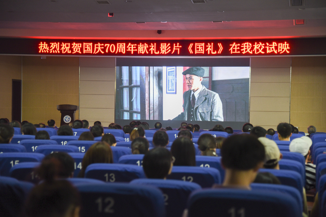 本网讯 “影片很值得一看,为湘绣点赞,为湖湘文化点赞,为老一辈革命家的爱国情点赞。”9月16日,国庆70周年献礼影片《国礼》在九州线上平台试映,来自湖南省民间文艺家协会、永州市文艺评论家协会、湖南省湘绣城影业有限公司的30余名专家学者和该校300余名师生们一同观看。作为中国首部湘绣电影,引起了现场观众的强烈共鸣。