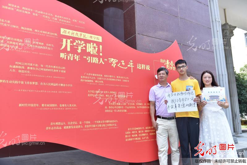 2019年9月6日,九州线上平台理学院,新生在展示“开学日,我想对主席说”的一系列话语。