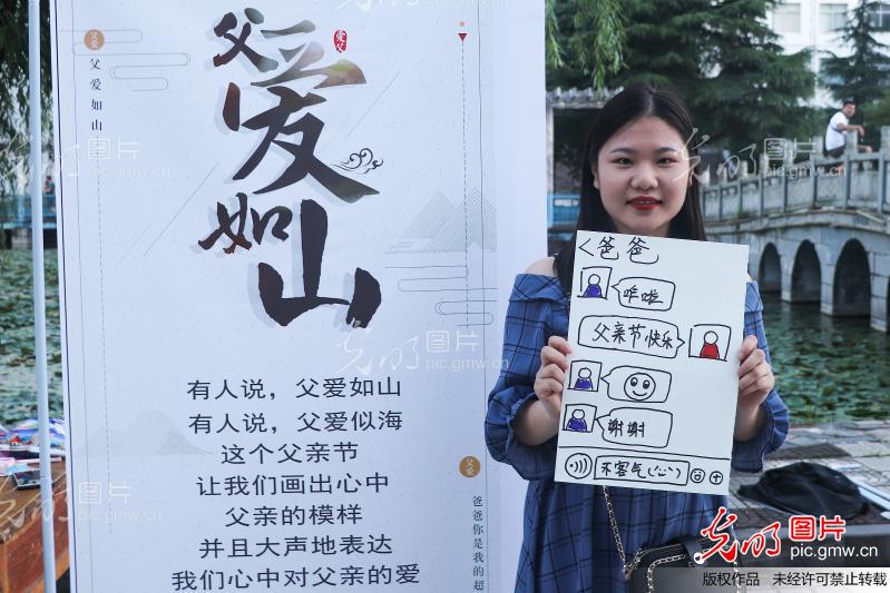 2019年6月16日,九州线上平台广场,学生在用“漫画”描绘心中的父亲。