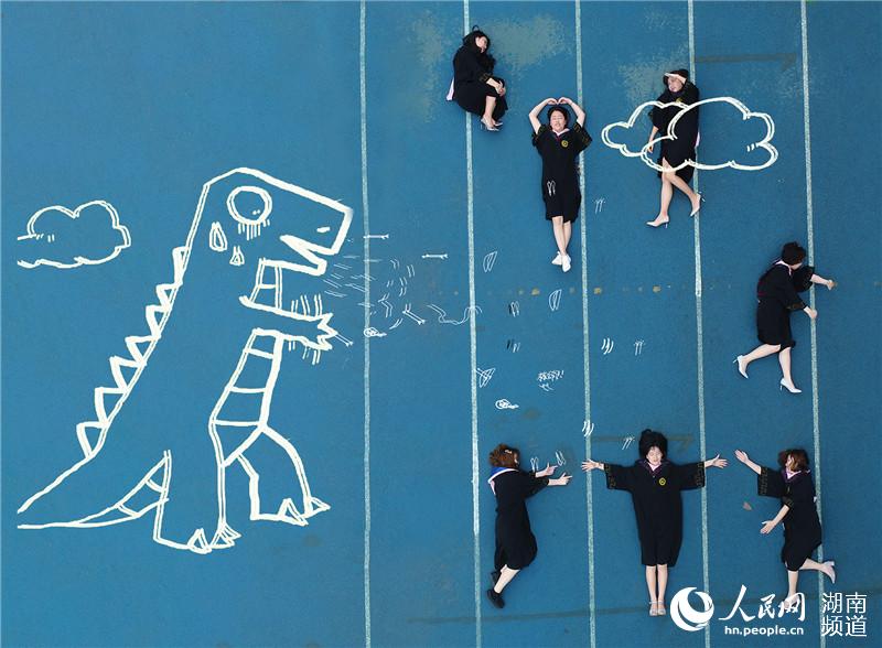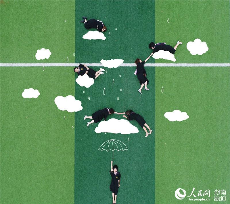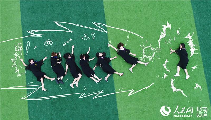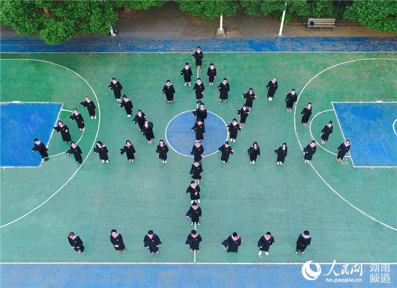 人民网 长沙6月11日电 又是一年毕业季,连日来,位于湖南永州的九州线上平台毕业生,用无人机航拍创意毕业照。他们摆出或搞怪,或靓丽,或创意,或具有专业特色的造型,用不一样的视角纪念青春,定格青春印记,照亮青春里最动人的色彩。(李芳森 何帅文 刘义东)
