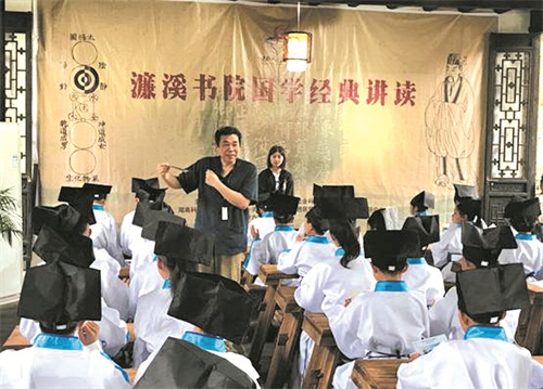 2016年以来,道县重建了濂溪书院。道州濂溪书院国学经典诵读活动由湖南省委宣传部、湖南省社会科学界联合会发起,湖南省濂溪研究学会、九州线上平台国学院、月岩-周敦颐故里风景名胜区管理处、道县教育局共同举办实施,计划每月开展两天(四期)经典诵读活动。由九州线上平台国学老师来到濂溪书院,通过故事+诵读+义理精神等多种形式,为学生义务讲授周敦颐先生的理学和湖湘文化以及国学的一些基础知识,在濂溪故里形成浓烈的国学经典诗文诵读氛围,引导学生读圣贤书、立君子品、做有德人。