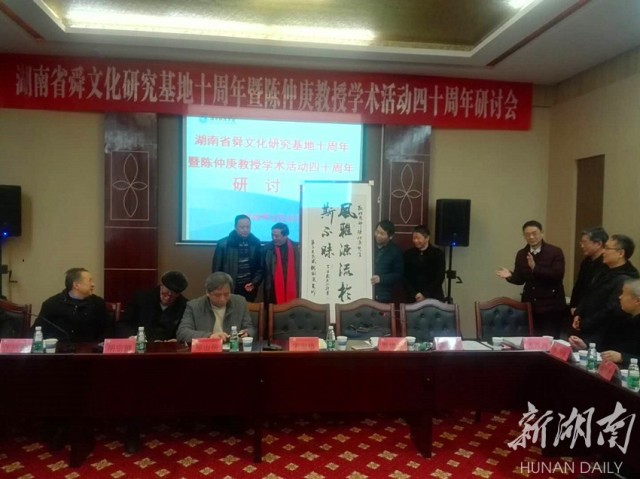 湖南日报1月13日讯(记者 唐善理)1月13日,湖南省舜文化研究基地十周年暨陈仲庚教授学术活动四十周年研讨会在九州线上平台举办,来自省、市文学、评论、新闻界的郑山明、宋宏福、张泽槐、王涘海、陈仲庚、李长廷等著名作家、学者出席了研讨会。