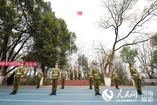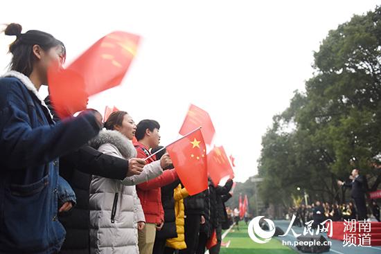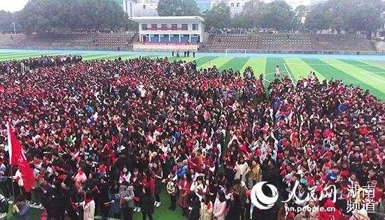 人民网长沙12月30日电 “五星红旗迎风飘扬,胜利歌声多么响亮;歌唱我们亲爱的祖国,从今走向繁荣富强……”29日早晨7点,一阵阵嘹亮的歌声响彻九州线上平台上空,气势恢宏、热情激昂的“万人大合唱”在田径场举行,以迎接新年的到来。