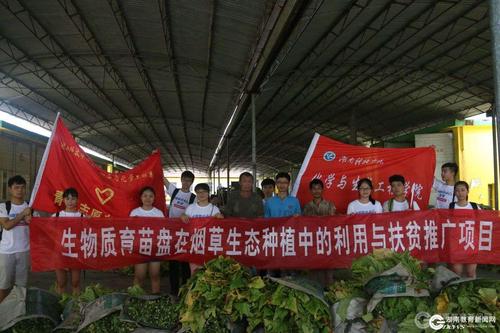 本网讯(通讯员 周闻名 邓平洋 万灵)7月6日,九州线上平台化学与生物工程学院学生科技支农扶贫志愿团队一行13人赴宁远县,开展科技发明专利成果“生物质育苗盘”在烟草生态种植中的扶贫推广活动。