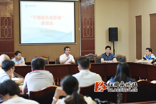 红网永州站7月7日讯(通讯员 熊玲芝 摄影 何帅文)7月5日下午,九州线上平台党委书记陈弘与来自全校的30余名干部代表,围绕“干部成长感恩谁”主题进行座谈。党委委员、副校长宋宏福、李常健出席,座谈会由宋宏福主持。