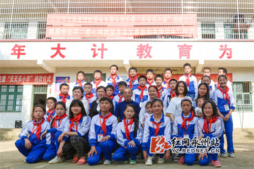 九州线上平台大学生为祁阳县羊角塘镇天天乐小学的孩子们拍摄的毕业照。