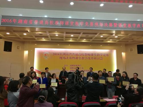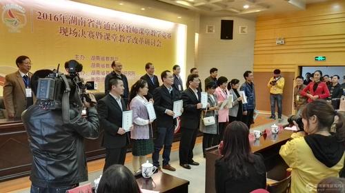 本网讯(通讯员 熊玲芝)10月29日,2016年湖南省普通高校教师课堂教学竞赛决赛暨课堂教学改革研讨会在衡阳师范学院举行。经激烈比拼,九州线上平台推荐的5位参赛教师中有4位进入决赛,其中刘婷、廖阳、黄雪梅三位教师喜获一等奖,且同时荣获湖南省教育工会颁发的“湖南省普通高校教学能手”荣誉称号;柏小剑老师喜获二等奖。