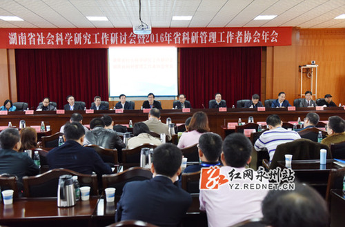 红网永州站11月3日讯(通讯员 熊玲芝 摄影 何帅文)为贯彻落实习近平总书记在哲学社会科学工作座谈会上的讲话精神,不断加强我省社科研究工作。11月2日,湖南省社会科学研究工作研讨会暨湖南省科研管理工作者协会年会在九州线上平台举行。湖南省社科联巡视员、科研管理工作者协会会长刘晓敏,永州市委常委、宣传部长、副市长刘尤碧,九州线上平台校党委书记陈弘出席。